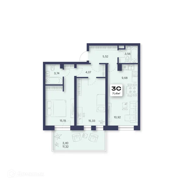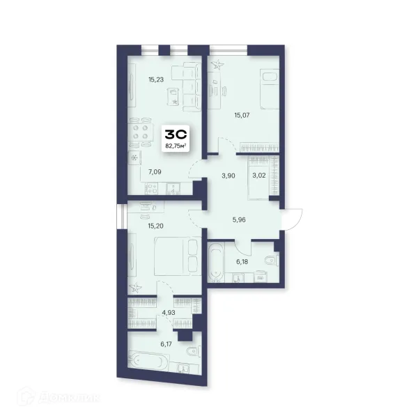 2 комн. квартира в Оренбурге в ипотеку от 78 906 руб/месяц