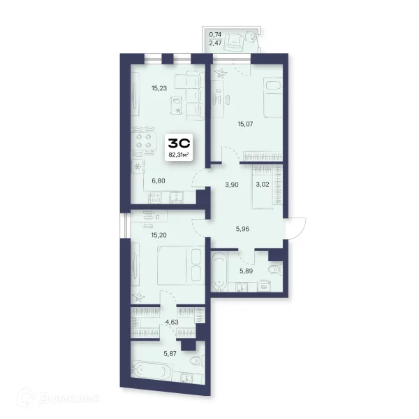 2 комн. квартира в Оренбурге в ипотеку от 79 470 руб/месяц