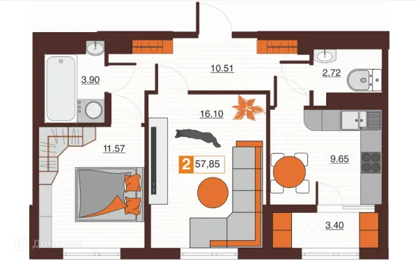 2 комн. квартира в Оренбурге в ипотеку от 45 509 руб/месяц