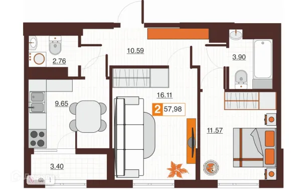 2 комн. квартира в Оренбурге в ипотеку от 46 576 руб/месяц