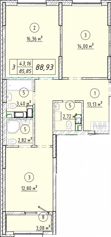 3 комн. квартира в Оренбурге в ипотеку от 67 240 руб/месяц