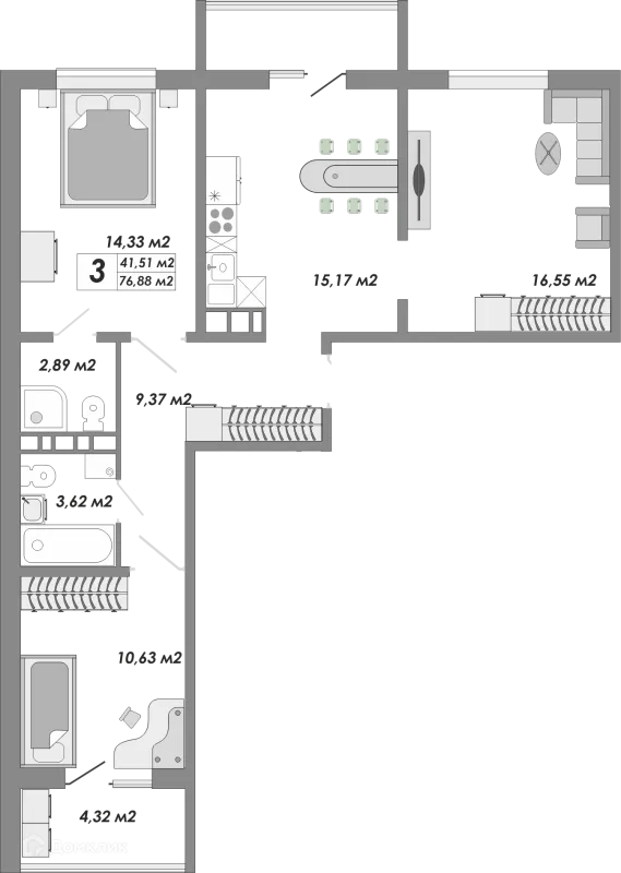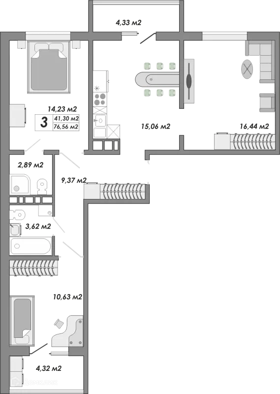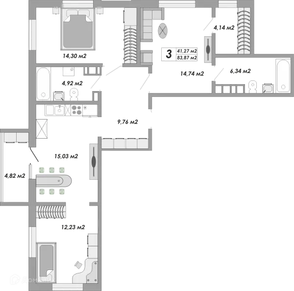 3 комн. квартира в Оренбурге в ипотеку от 58 583 руб/месяц