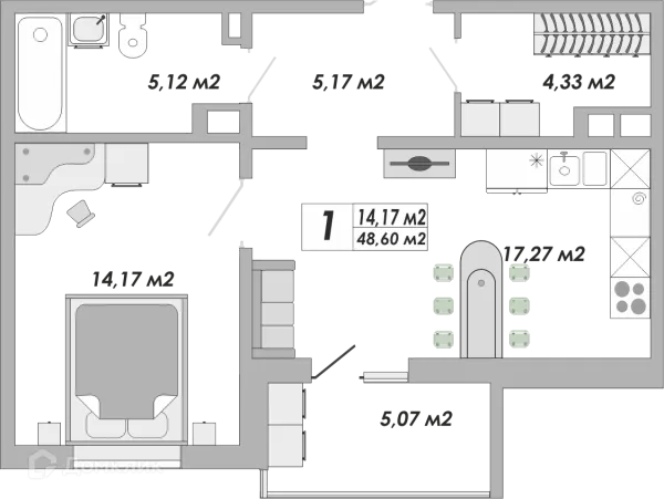 1 комн. квартира в Оренбурге в ипотеку от 27 546 руб/месяц