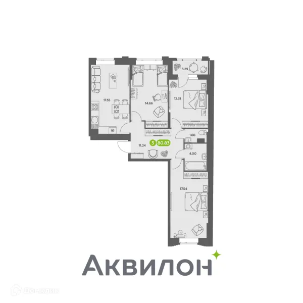 3 комн. квартира в Архангельске в ипотеку от 101 458 руб/месяц