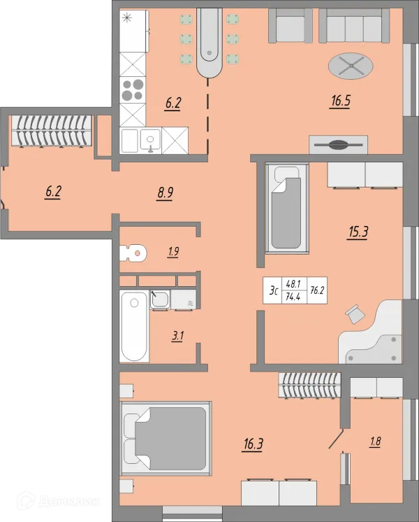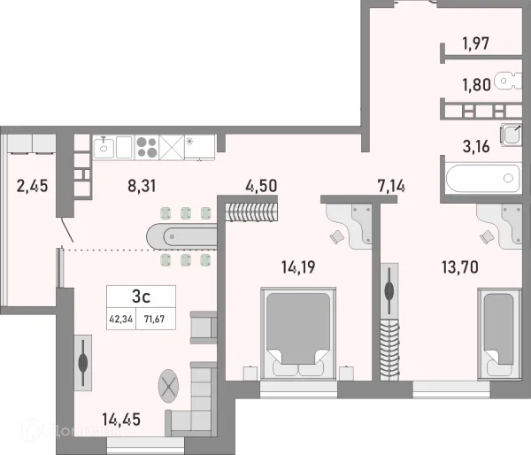3 комн. квартира в Оренбурге в ипотеку от 38 190 руб/месяц