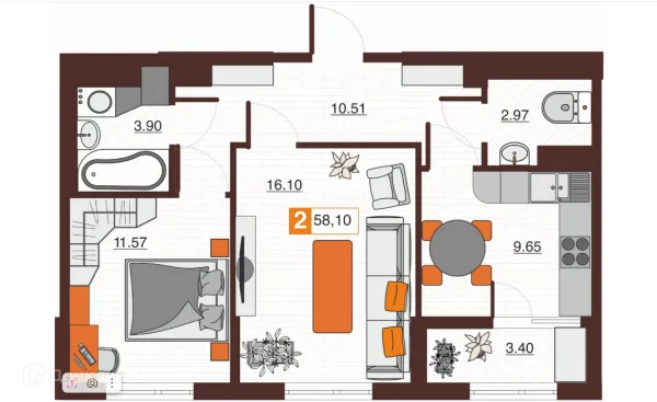 2 комн. квартира в Оренбурге в ипотеку от 158 568 руб/месяц