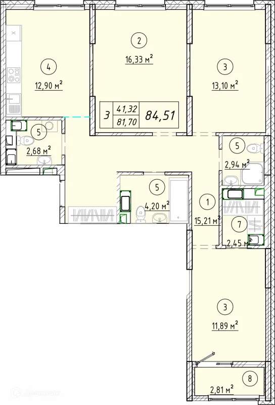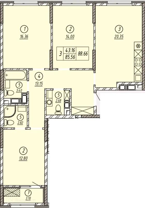 3 комн. квартира в Оренбурге в ипотеку от 57 736 руб/месяц