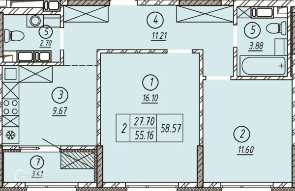 2 комн. квартира в Оренбурге в ипотеку от 47 094 руб/месяц