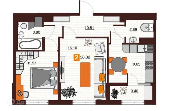 2 комн. квартира в Оренбурге в ипотеку от 46 034 руб/месяц