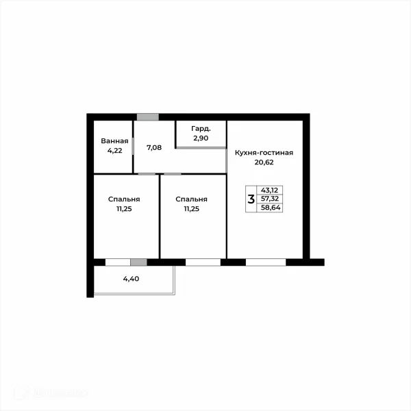 3 комн. квартира в Оренбурге в ипотеку от 27 911 руб/месяц