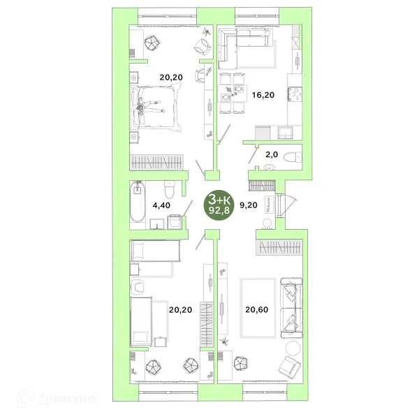 3 комн. квартира в Оренбурге в ипотеку от 63 059 руб/месяц