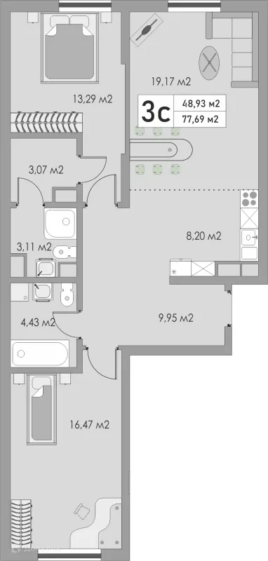 3 комн. квартира в Оренбурге в ипотеку от 64 149 руб/месяц