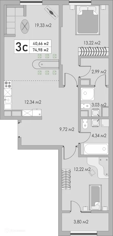 3 комн. квартира в Оренбурге в ипотеку от 63 978 руб/месяц