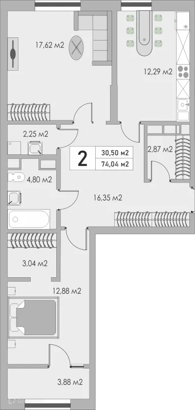 2 комн. квартира в Оренбурге в ипотеку от 46 043 руб/месяц