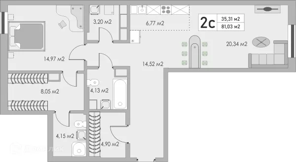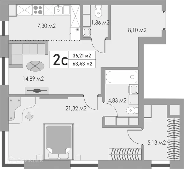2 комн. квартира в Оренбурге в ипотеку от 61 499 руб/месяц