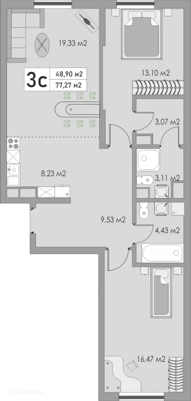 3 комн. квартира в Оренбурге в ипотеку от 62 896 руб/месяц