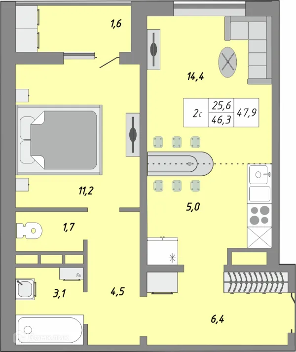 2 комн. квартира в Оренбурге в ипотеку от 33 279 руб/месяц