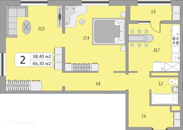 2 комн. квартира в Оренбурге в ипотеку от 38 640 руб/месяц