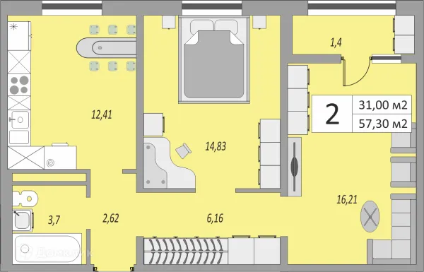 2 комн. квартира в Оренбурге в ипотеку от 27 035 руб/месяц