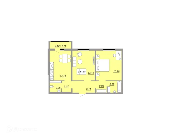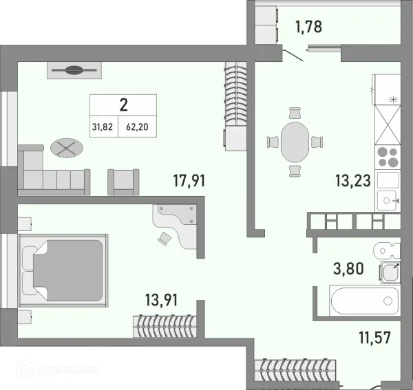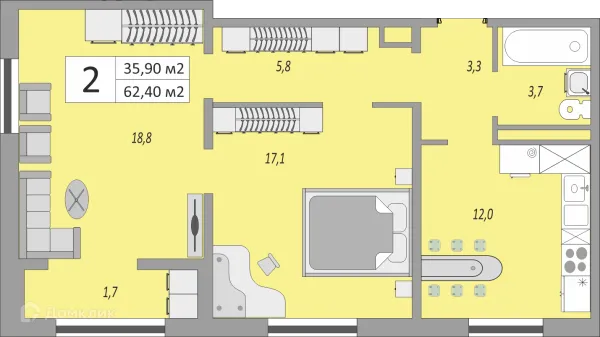 2 комн. квартира в Оренбурге в ипотеку от 35 493 руб/месяц