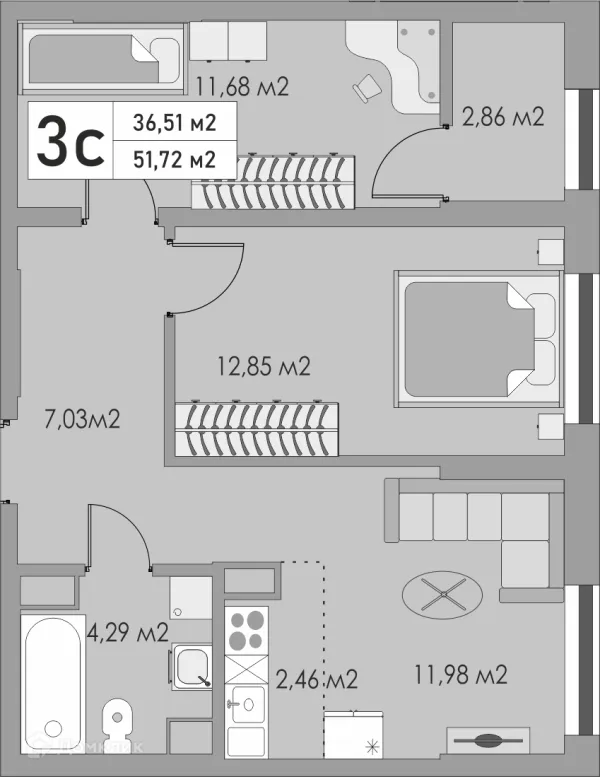 3 комн. квартира в Оренбурге в ипотеку от 46 491 руб/месяц