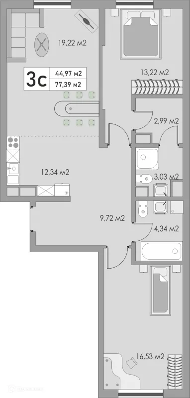 3 комн. квартира в Оренбурге в ипотеку от 46 976 руб/месяц